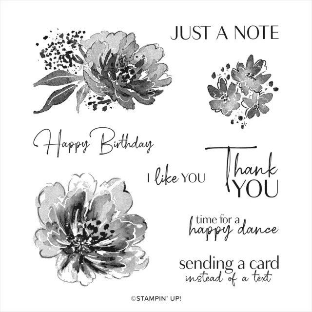 Your creativity will overflow with the Flowing Flowers Stamp Set. Create cards with the exquisite images and heartfelt greetings. Use it anytime you want to express care for a loved one or want to create a project that says elegant beauty.