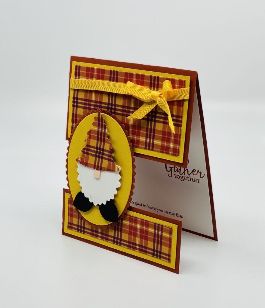 How can you not like these cute little Gnomes? The Gnome For The Holidays Fall Open Front Panel Card will surely make someone’s day. The fun thing about making the Gnome out of punches is that I be will changing it up every month for the holidays. In addition, you could punch out the tree and reverse it to easily change up the colors for a Christmas look.